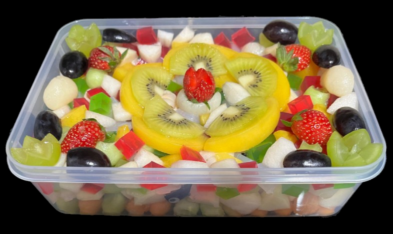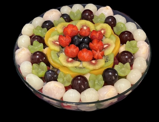 Mangkuk buah kami yang paling populer, dengan stroberi, anggur, dan kiwi.